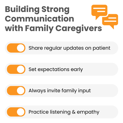 This ensures consistency across care teams and keeps family caregivers in the loop.