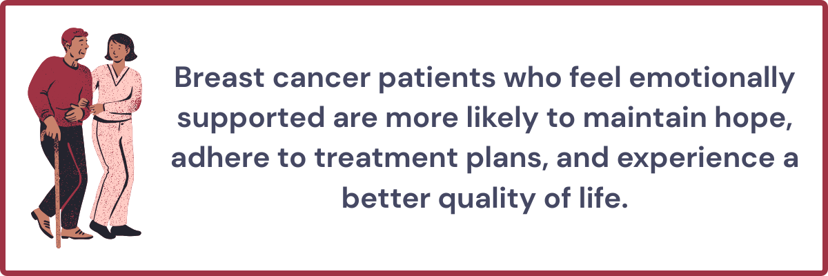 Patients with emotional support often adhere better to treatments, experience less stress, and maintain a higher quality of life.