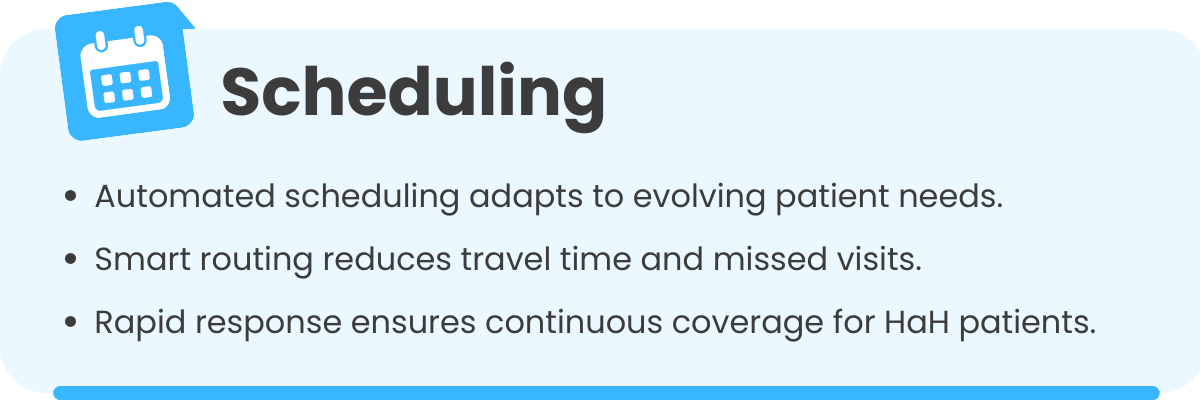 Impact: Inefficient scheduling can increase missed visits, caregiver burnout, and patient risk.