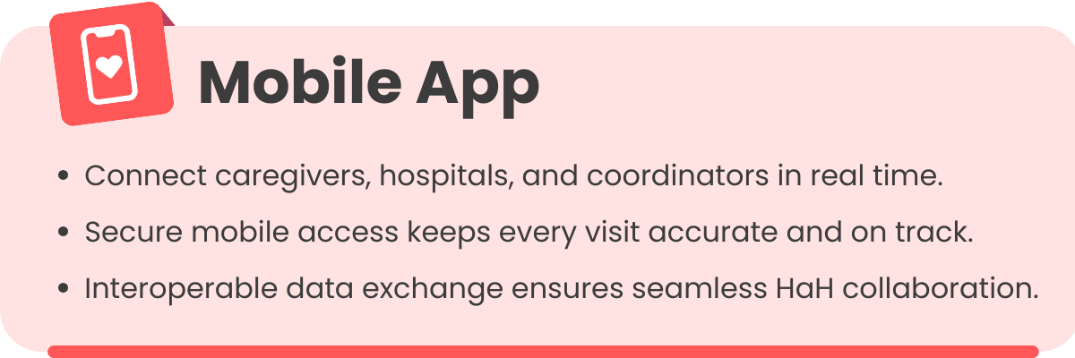 Challenge: HaH requires caregivers, clinical teams, and hospital coordinators to exchange information instantly. Delays or errors in communication can compromise patient safety.