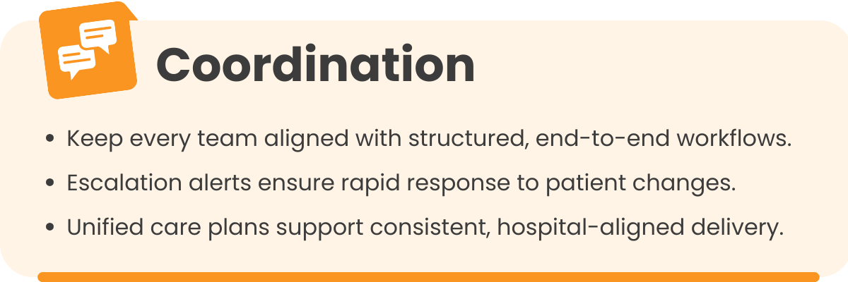 Impact: Fragmented workflows can lead to missed visits, delayed escalations, and inconsistent patient monitoring.