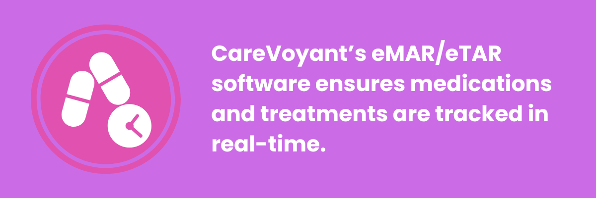 CareVoyant’s eMAR/eTAR software ensures medications and treatments are tracked in real-time. Mobile apps with alerts and care coordination features minimize errors. Structured digital workflows and staff training further improve accuracy and compliance (navigating PDN challenges with technology). Agencies using electronic medication administration report 30–40% fewer documentation errors.